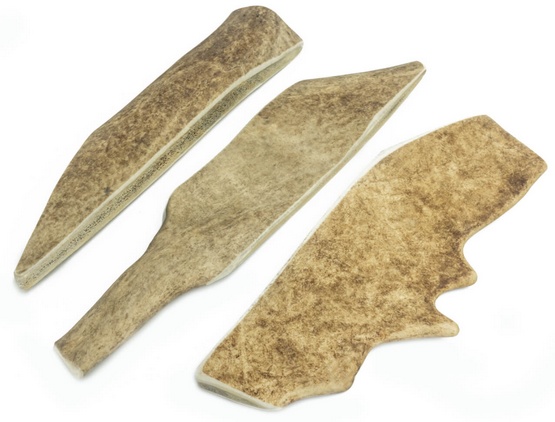 Poroże jelenia jest znacznie mniej podatne na odpryskiwanie i odłamywanie niż przetworzone kości. Dzięki swojej budowie podczas żucia poroże nie pęka, nie odpryskuje, ale powoli się rozdrabnia.