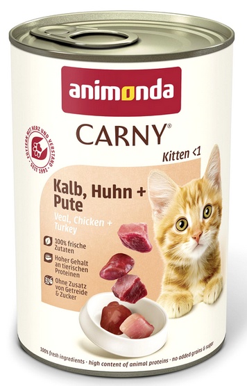 Animonda Carny Kitten to pełnowartościowy, kompletny posiłek dla kociąt, składający się z czystego mięsa najwyższej jakości