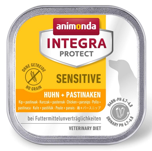 INTEGRA® PROTECT Sensitive została opracowana specjalnie dla psów z nietolerancją pokarmową, objawiającą się przede wszystkim swędzeniem i biegunką. W tym wypadku może być wskazane ograniczone wykorzystanie źródeł białka zwierzęcego i roślinnego. INTEGRA PROTECT Sensitive zawiera tylko dwa źródła białka: kurczaka i pasternak.