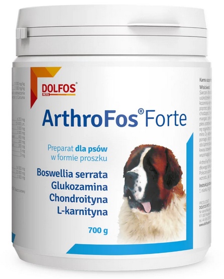 Preparat dla psów z glukozaminą, chondroityną, L-karnityną oraz z czarcim pazurem.