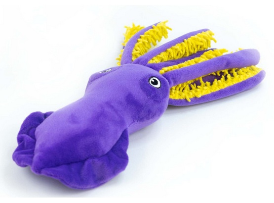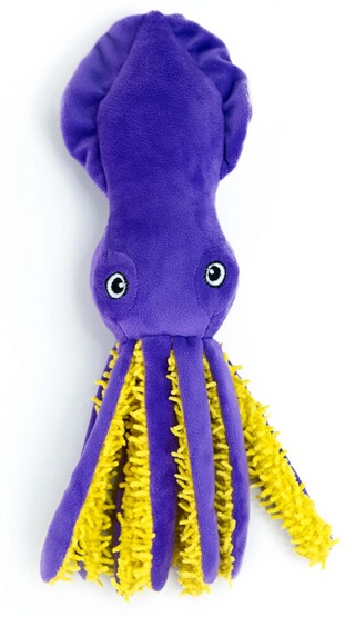 Calma to fioletowa kałamarnica, której żółte macki wydają szeleszczące dźwięki i mają różne faktury – to prawdziwa sensoryczna przygoda dla Twojego psa! Każda macka to nowe wyzwanie dla zębów i pyska. Zabawka sprawdzi się zarówno w domu, jak i na spacerze jako psia zdobycz!