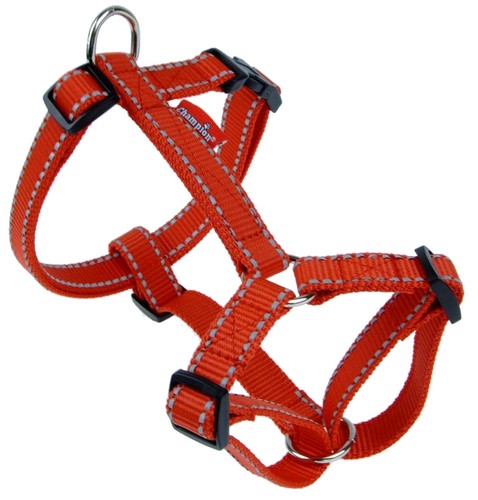Szelki z wytrzymałej taśmy z elementami odblaskowymi.