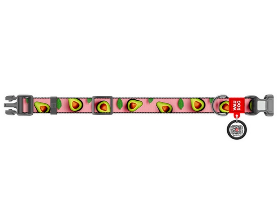 Collar WauDog Nylon Obroża nylonowa z QR-paszportem, plastikowy fastex, wzór AWOKADO NA RÓŻU, M 20mm/28-40cm
