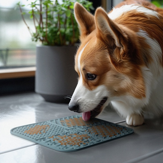 Mata do lizania jest przeznaczona dla psów i kotów i nadaje się do mokrej karmy. Korzystanie z tej maty pomaga spowolnić przyjmowanie pokarmu przez zwierzę, poprawia trawienie, dba o higienę jamy ustnej i pomaga utrzymać zdrową wagę. Dzięki specjalnie zaprojektowanej teksturze mata skutecznie usuwa brud, bakterie i resztki jedzenia z powierzchni języka.