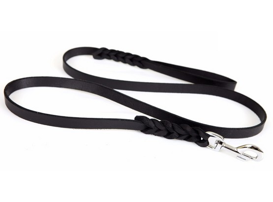 Dingo Smycz skórzana natłuszczana z zaplatanymi elementami 0,8x230cm czarna