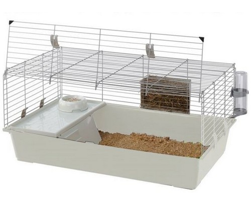 Klatka jest przewidziana dla większych gryzoni lub królików, dlatego pozwala odchylić cały bok – duży otwór daje łatwy dostęp do pupila. Ponadto oddzielana kuweta pozwala również łatwo utrzymać higienę w klatce.