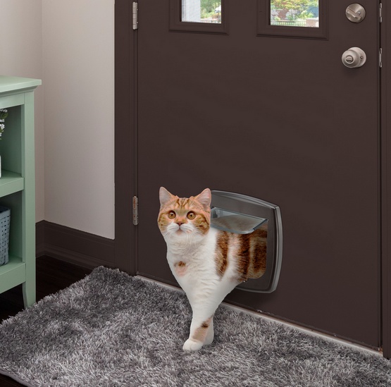 Dodatkowo modele Swing 5, 7 i 9 są wyposażone we wskaźnik przejścia, który pomoże ci błyskawicznie ocenić, gdzie znajduje się twoje zwierzę. Wskaźnik przejścia to "flaga" umieszczona na dnie klapy – będzie wskazywała kierunek, w którym twój pupil ostatnio przechodził.