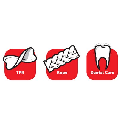 - Zabawki posiadają wypustki oraz węzły, które przy gryzieniu masują dziąsła psa i zapobiegają osadzaniu się kamienia nazębnego.
