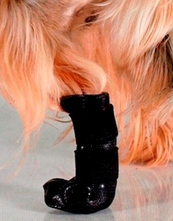 But zakłada się na chorą stopę psa i zapina na rzepy, które są przymocowane do gumy o takiej konstrukcji, aby nie zatrzymywała krążenia. Należy prawidłowo zapiąć but, nie zaciskać zbyt mocno i nie pozostawiać zbyt dużo luzu.