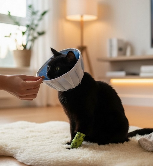 Produkt ogranicza możliwość lizania, gryzienia oraz drapania miejsca operowanego, opatrunków i szwów chirurgicznych, wspierając prawidłowy proces gojenia.