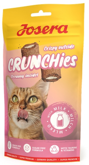 Niektóre rzeczy nigdy się nie zmieniają: nasze małe tygryski szaleją na widok mleka odkąd były kociętami – a dziś mogą cieszyć się naszymi Josera Crunchies with Milk! Bezzbożowa i niskokaloryczna receptura przekąsek została dopracowana do perfekcji: w chrupiącej skorupce znajduje się kremowe nadzienie, które pokocha także Twój kot.