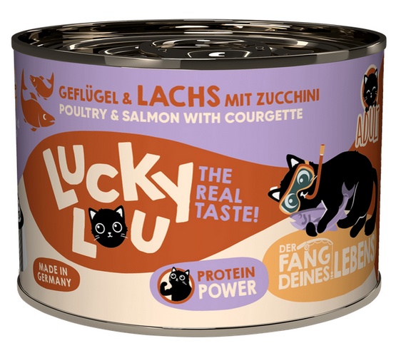 Gdzie indziej jest nudne standardowe jedzenie – Lucky Lou jest dostępne w 18 różnych odmianach smakowych w saszetkach 125 g oraz w puszkach 200 g i 400 g. Karma produkowana w Niemczech.