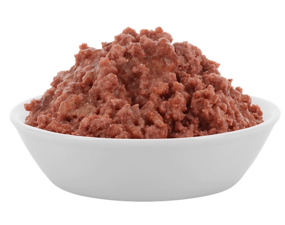 Drób 60% (serce, mięśnie, wątroba, żołądki, szyja i tłuszcz), bulion drobiowo-wołowy 26,8%, wołowina 10% (serce, mięśnie, wątroba i płuca), marchew 2%, minerały 1%, olej z wiesiołka 0,2%