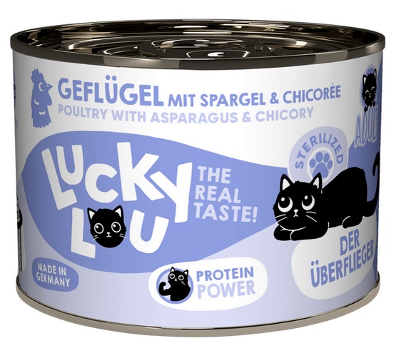 Gdzie indziej jest nudne standardowe jedzenie – Lucky Lou jest dostępne w 18 różnych odmianach smakowych w saszetkach 125 g oraz w puszkach 200 g i 400 g. Karma produkowana w Niemczech.