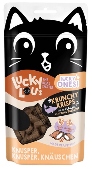 Lucky Lou Ones Krunchy Krisps to mega-chrupiące smakołyki z absolutnie najlepszym na świecie nadzieniem! Kto może się temu oprzeć? Oczywiście są opracowane w najwyższej jakości, odpowiedniej dla kotów i z najlepszym smakiem na świecie. Od nas jest tylko to, co najlepsze!