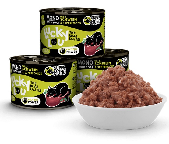 Lucky Lou Supermono jest karmą pełnoporcjową dla kotów. Nie zawiera zbóż ani cukru. Mokre, wysokiej jakości jednobiałkowe jedzenie, które przypadnie do gustu kocim smakoszom, również wrażliwym.