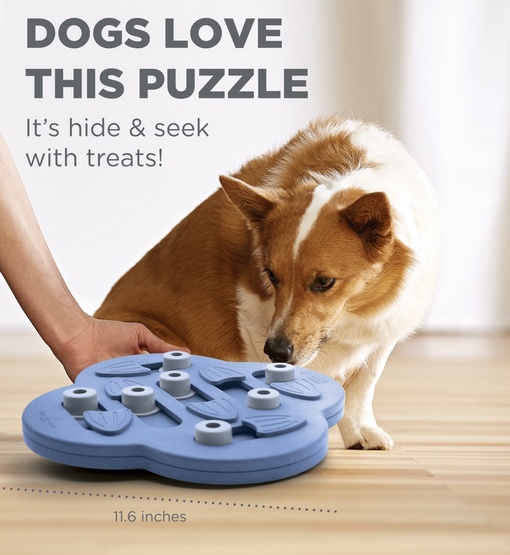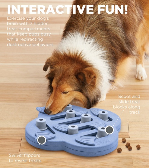 Węsząc i przesuwając łapami lub pyszczkiem dźwigienki skrywające łakocie, twój czworonóg szybko nauczy się odnajdywać ukryte skarby!