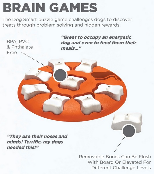 Gra Smart zachęca do swobodnej zabawy w poszukiwanie smakołyków! Zacznij od napełnienia 9 przegródek przysmakami lub suchą karmą. Potem zachęć pupila do eksploracji zabawki.