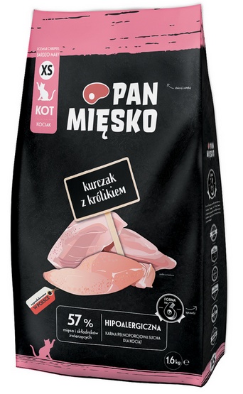 Pan Mięsko Karma sucha dla kociąt – kurczak i królik chrupki XS 1,6kg