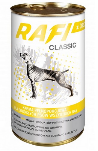 Mokre karmy dla psów Rafi Classic to w pełni zbilansowany, smakowity pokarm, dostarczający odpowiedniej ilości witamin i minerałów.