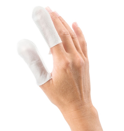 - Nałóż nakładkę na palec i oczyść zęby pupila