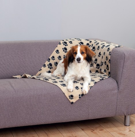 Trixie Koc 100x70cm Beżowy w czarne łapki [37191]