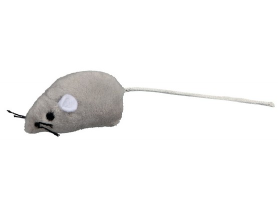 Zabawka dla kota: 5-centymetrowa myszka z szarym futerkiem.