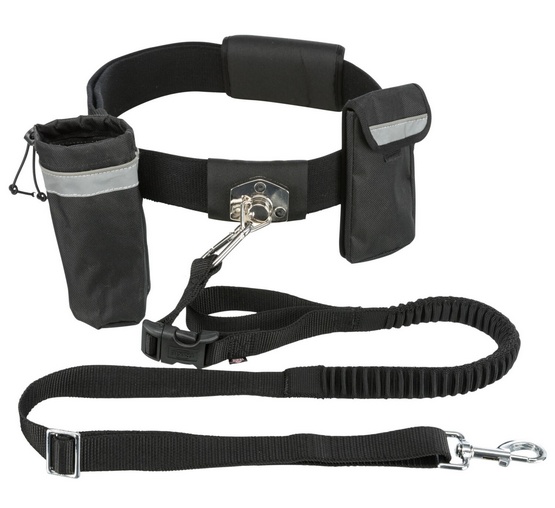 Zestaw przeznaczony do biegania z psem. W komplecie znajduje się smycz oraz pas dla właściciela psa. Smycz może być zapinana na obrożę bądź uprząż.