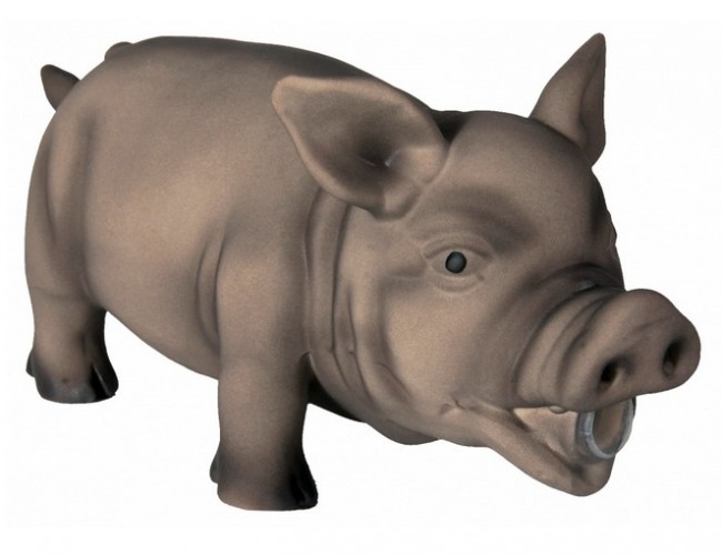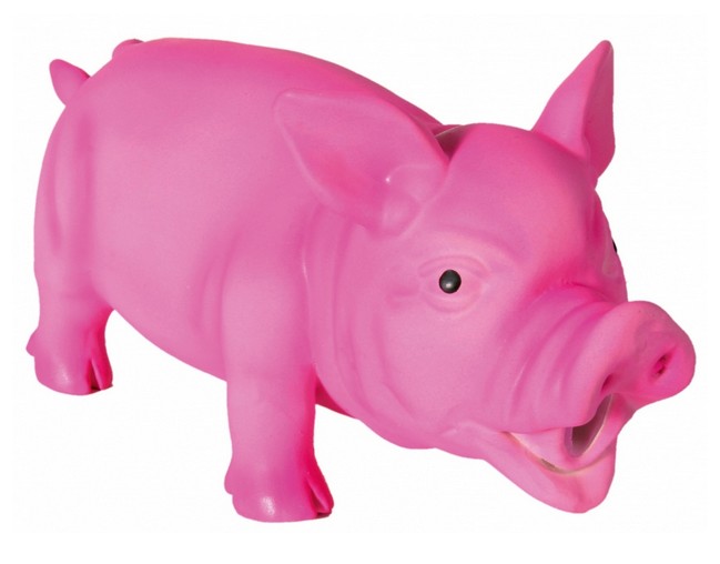 Zabawka świnia z lateksu – materiał, który jest bezpieczny dla psa w razie połknięcia (nie twardnieje i jest wydalany w całości).