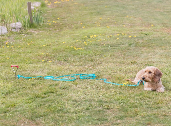 Metalowy, galwanizowany wkręt umożliwia łatwe i szybkie przywiązanie psa na smyczy, np. podczas spaceru.