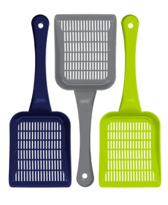 Podczas przesiewania czysty żwirek wypada z łopatki, a pozostają na niej jedynie odchody i bryłki zużytego żwirku.