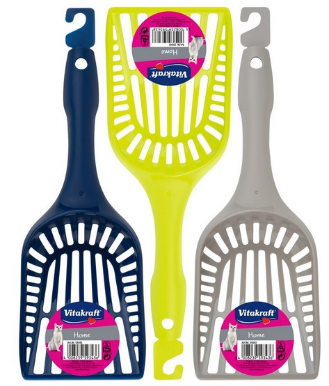Podczas przesiewania czysty żwirek wypada z łopatki, a pozostają na niej jedynie odchody i bryłki zużytego żwirku.