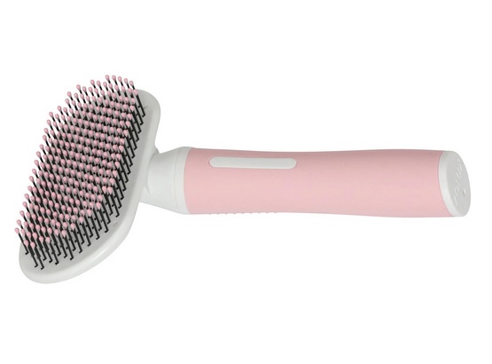 Umożliwia delikatne szczotkowanie podszerstka, dzięki elastycznym igłom, których plastikowe końcówki chronią skórę kota przed podrażnieniami. Rozczesuje, usuwa martwy podszerstek i wygładza sierść.