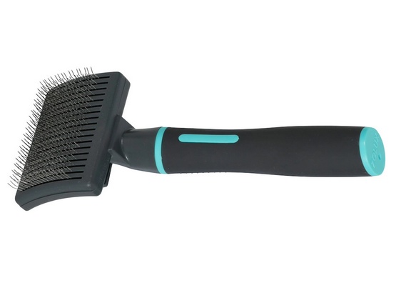 Elastyczne, zakrzywione igły umożliwiają delikatne szczotkowanie podszerstka. Dzięki wysuwanym igłom szczotka jest wygodna w użyciu i łatwa do utrzymania w czystości. Rozczesuje, usuwa martwy podszerstek i wygładza sierść.