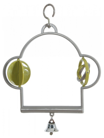 - plastikowa huśtawka dla ptaków z zabawkami i dzwoneczkiem