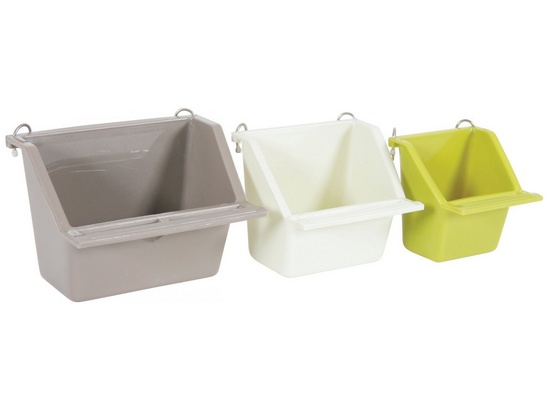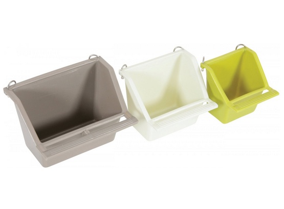 Praktyczne, plastikowe karmidełko z żerdką to ważny element wyposażenia klatki. Stabilne mocowanie za pomocą praktycznych haczyków zapobiega rozsypaniu pokarmu, dzięki czemu klatka jest łatwiejsza do utrzymania w czystości. Produkt pod względem kolorystycznym jest kompatybilny z klatkami z gamy Arabesque, ale sprawdzi się również w innych modelach.