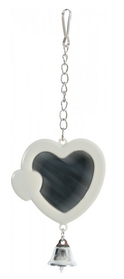 Lusterko w kształcie serca na łańcuszku to idealny dodatek do klatki dla ptaków. Dzięki praktycznemu karabińczykowi, lusterko można przymocować do prętów klatki w dowolnym miejscu. Ozdobny dzwoneczek dodatkowo przyciąga uwagę zwierzęcia. Zabawka ta nie tylko dostarcza zwierzęciu rozrywki, ale także stymuluje je intelektualnie i urozmaica przestrzeń klatki.
