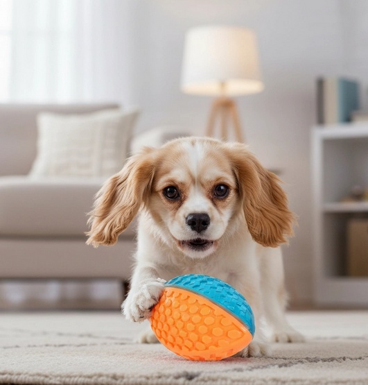 - Stymulacja fizyczna i psychiczna dzięki wielofunkcyjności (aportowanie, zlizywanie przysmaków, gryzienie).