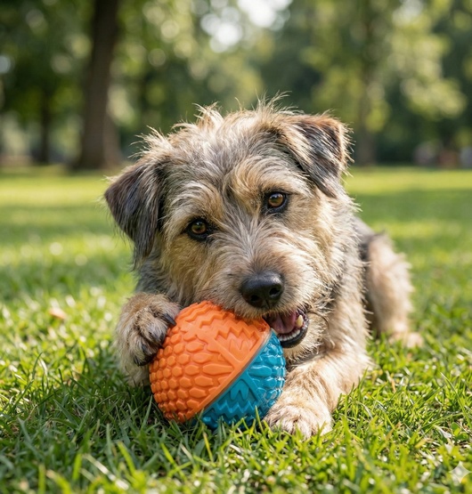 - Stymulacja fizyczna i psychiczna dzięki wielofunkcyjności (aportowanie, zlizywanie przysmaków, gryzienie).