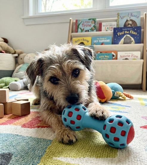- Zabawka w kształcie hantla – idealna do gryzienia, aportowania i samodzielnej zabawy.